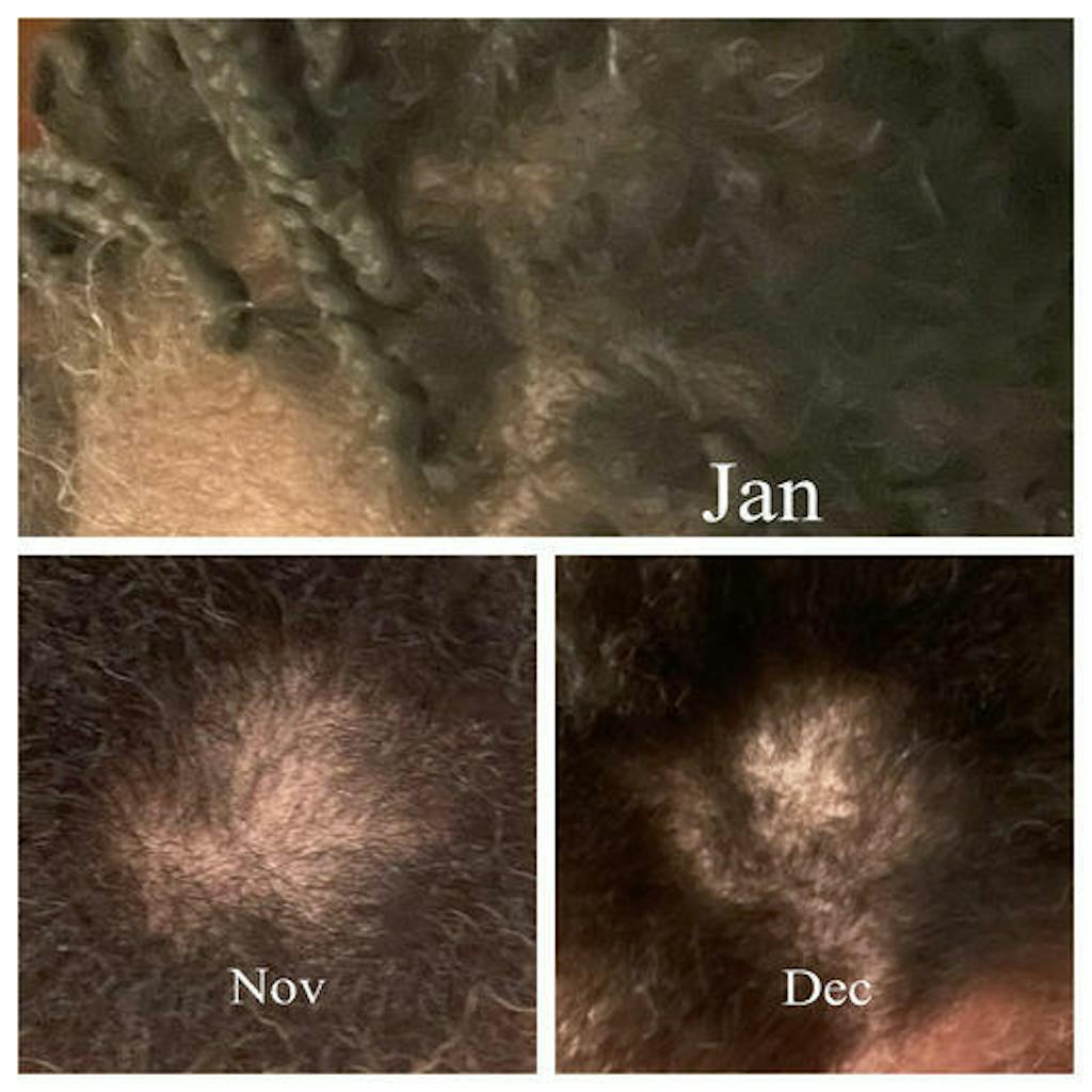 First off I’m dealing with real bad alopecia as you can see in the picture. I use to see a lot of my hair coming out one I combed it, but now I rarely see any. And that hair boost oh how I love it my hair seems to stay moisturized and not dry like it use to be. I will continue to take pictures as I go on this journey with your products. Thanks